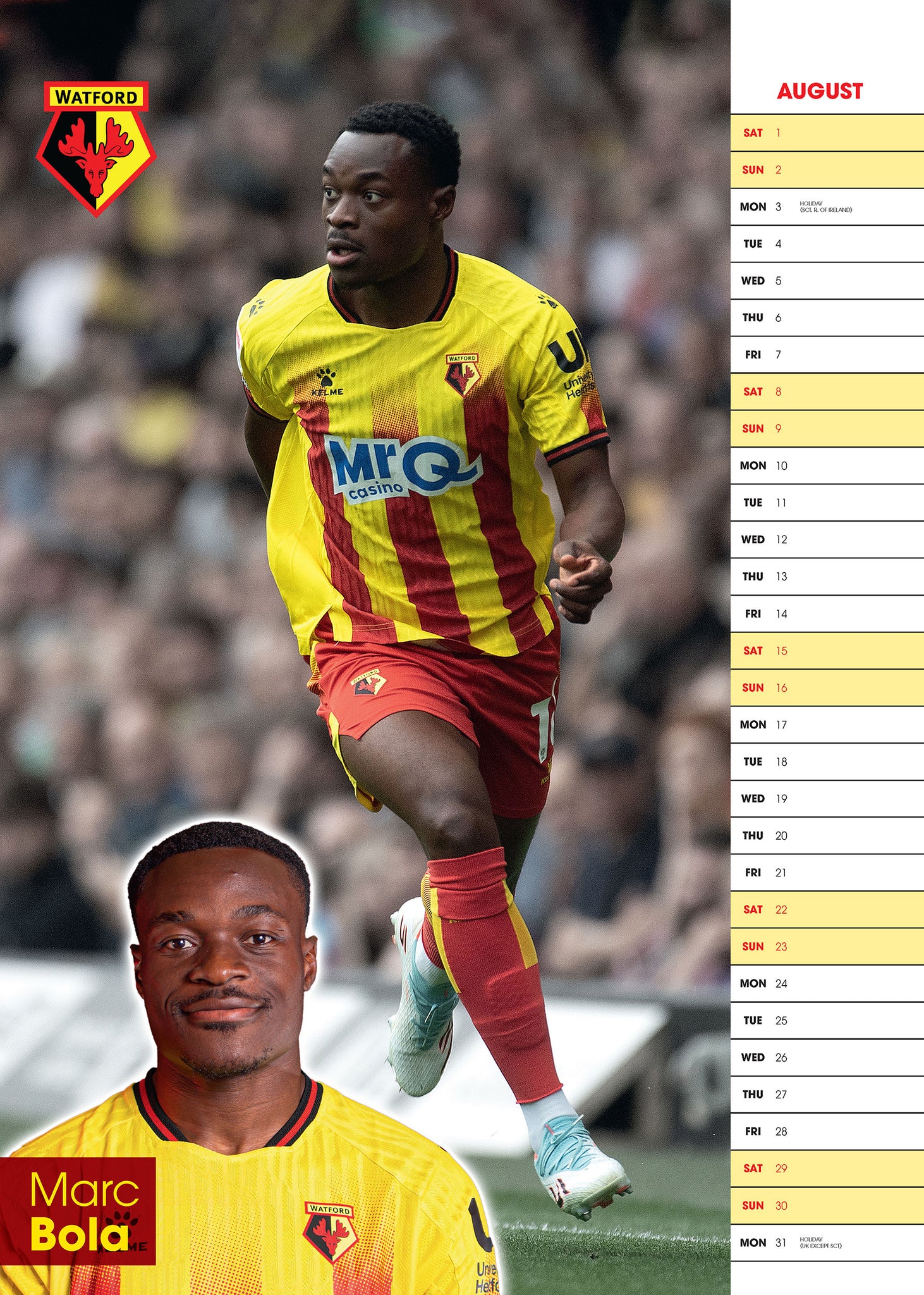 Followers of Watford FC will love this A3 calendar. Jam packed full of new images for 2026 You can enjoy seeing your favourite players all year long and enjoy a new image of the team every month! <BR><BR>